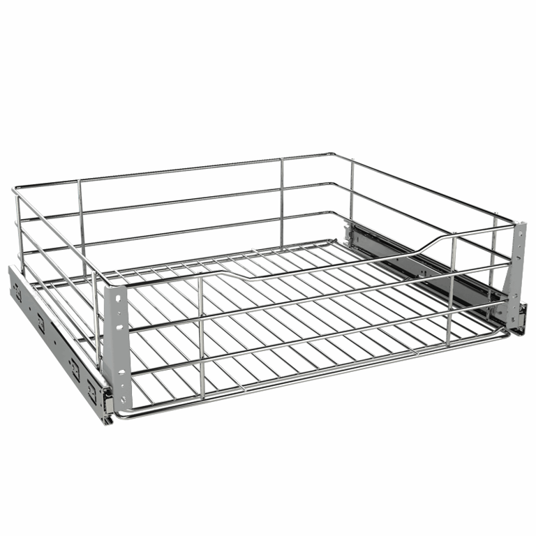 ACESSÓRIOS: Corrediças telescópicas de 450 mm zincadas, acessórios para fixação na frente da gaveta e kit de parafusos para fixação no móvel. Na opção inox, as corrediças, os acessórios e o kit de fixação também são em aço inox